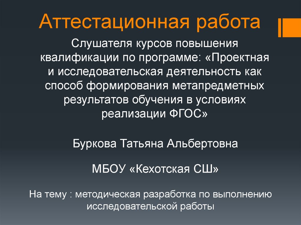 Аттестационная работа. Методическая разработка по выполнению исследовательской работы