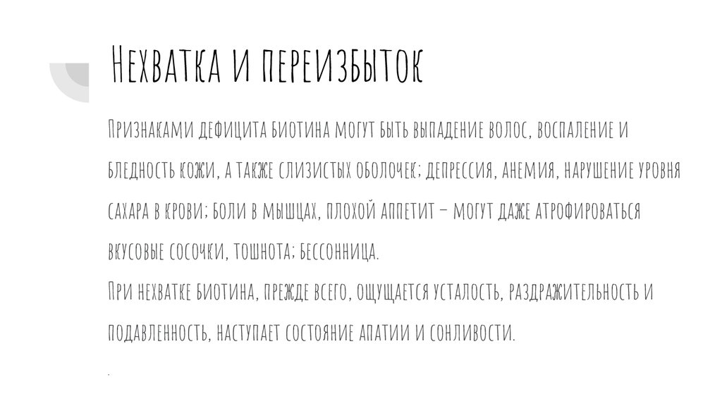 Нехватка и переизбытокПризнаками дефицита биотина могут быть выпадение волос, воспаление и