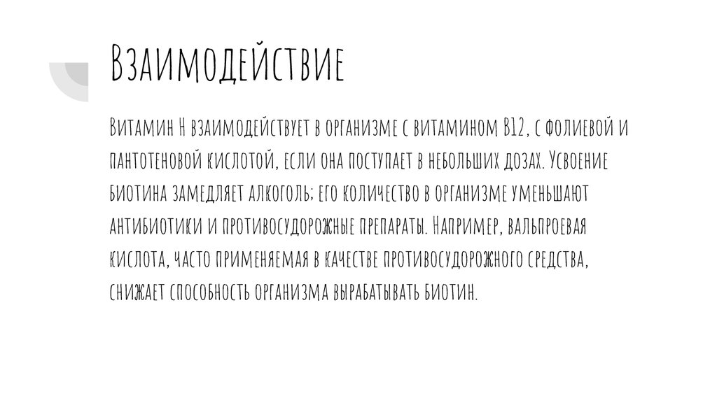 ВзаимодействиеВитамин Н взаимодействует в организме с витамином В12, с фолиевой и