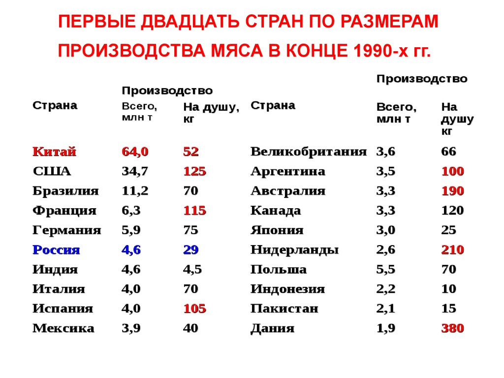 ПРОИЗВОДСТВА МЯСА В КОНЦЕ 1990-х гг.