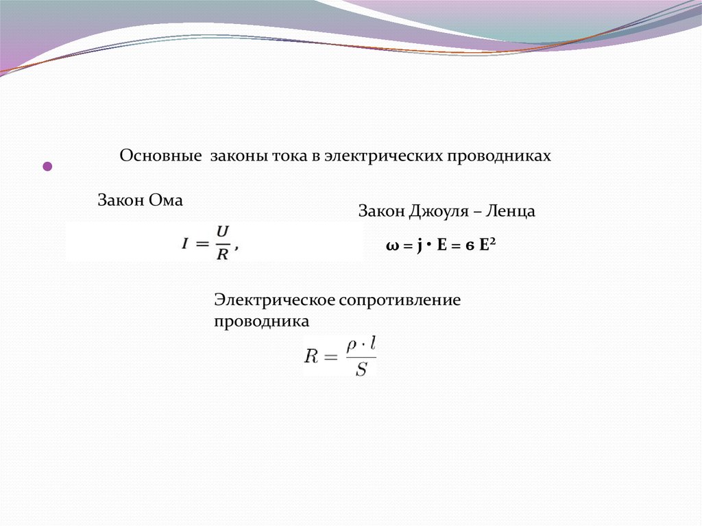 Основные законы тока в электрических проводникахЗакон Ома
