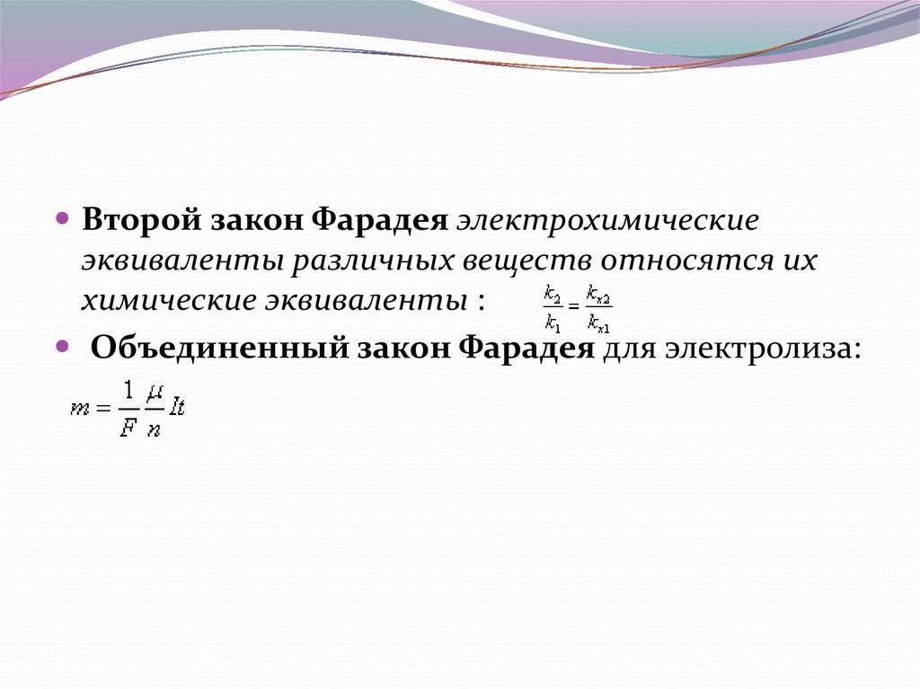 Объединенный закон Фарадея для электролиза: