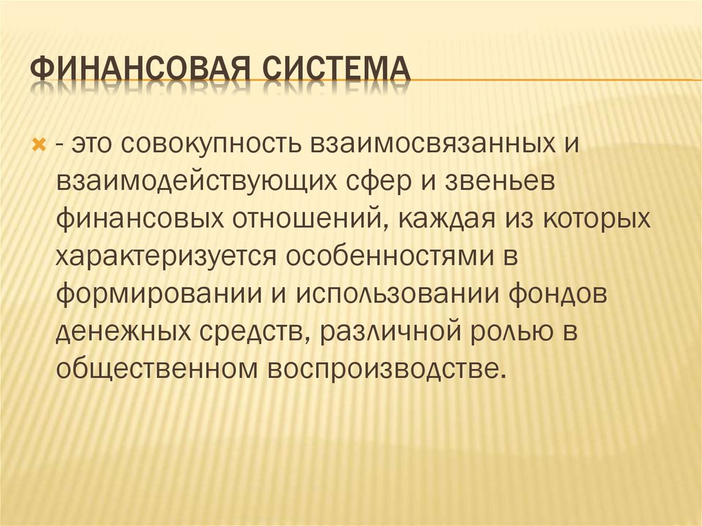ФИНАНСОВАЯ СИСТЕМА- это совокупность взаимосвязанных и