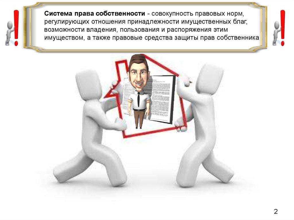 Система права собственности - совокупность правовых норм,регулирующих отношения принадлежности имущественных благ,