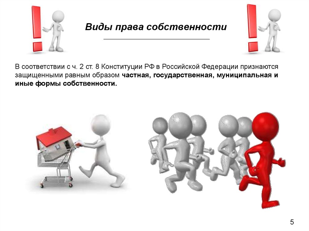 Виды права собственностиВ соответствии с ч. 2 ст. 8 Конституции РФ в Российской Федерации признаются