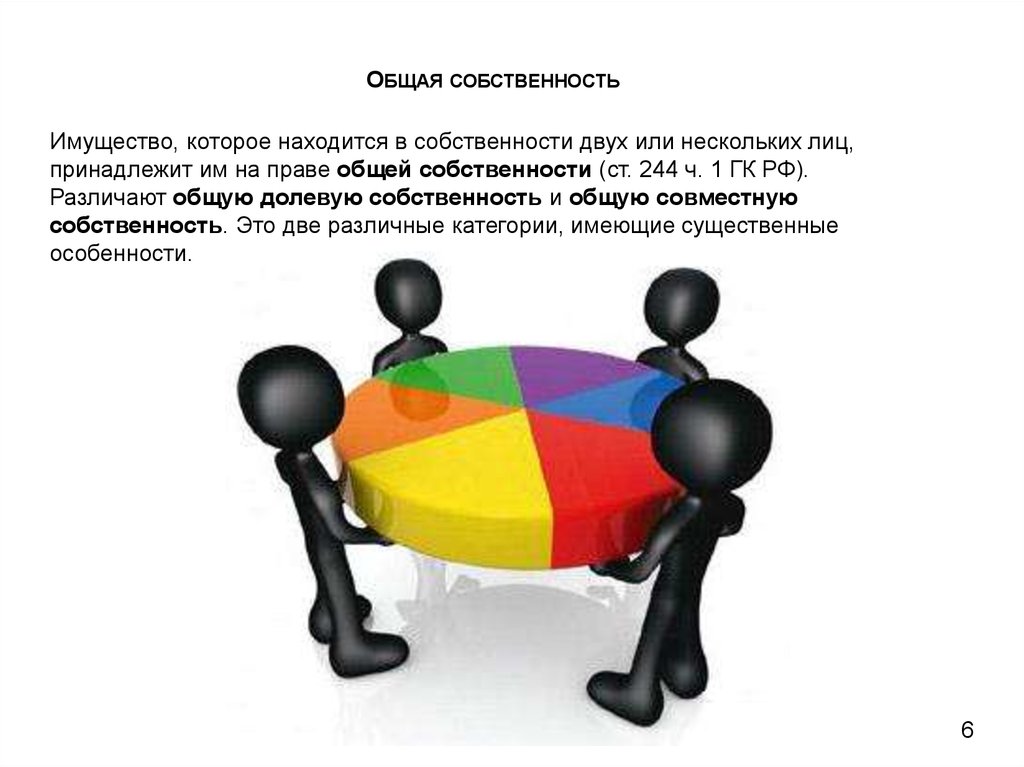 Различают общую долевую собственность и общую совместную