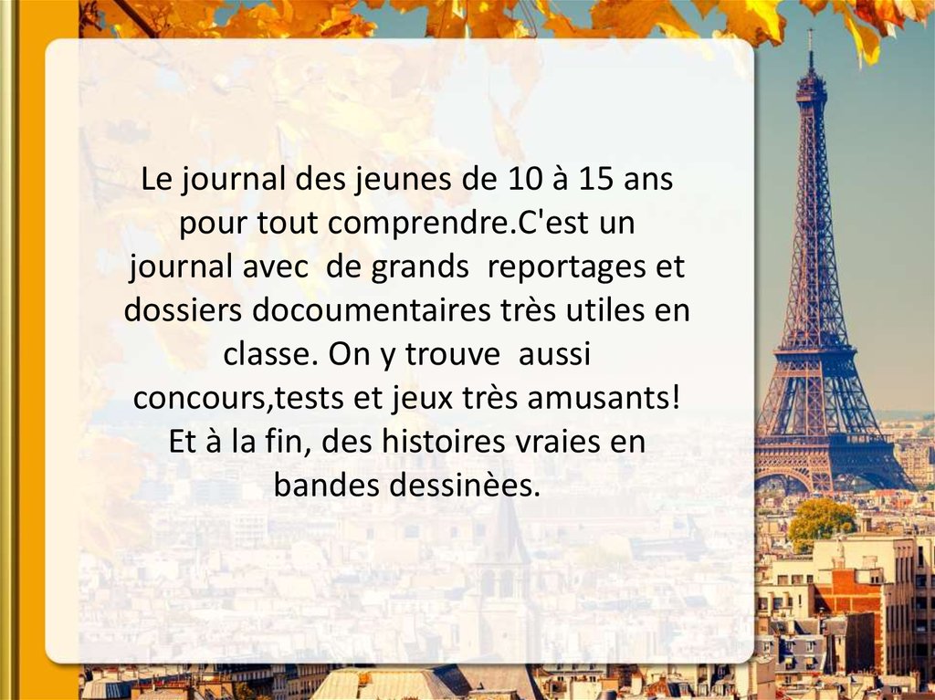 Le journal des jeunes de 10 à 15 anspour tout comprendre.C'est un