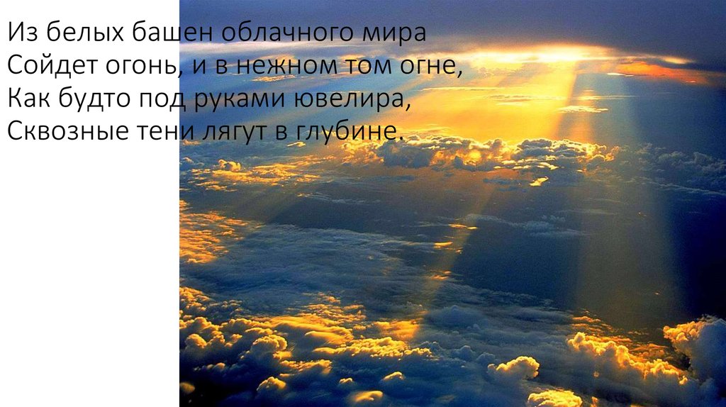 Из белых башен облачного мираСойдет огонь, и в нежном том огне,