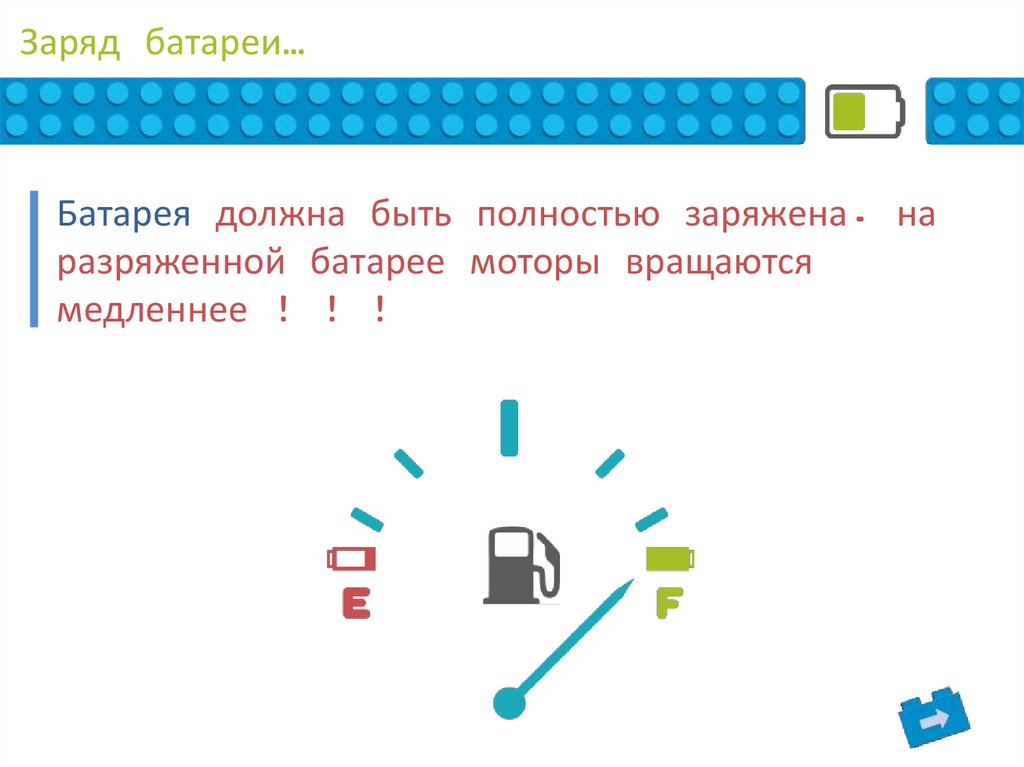 Заряд батареи…Батарея должна быть полностью заряжена. на