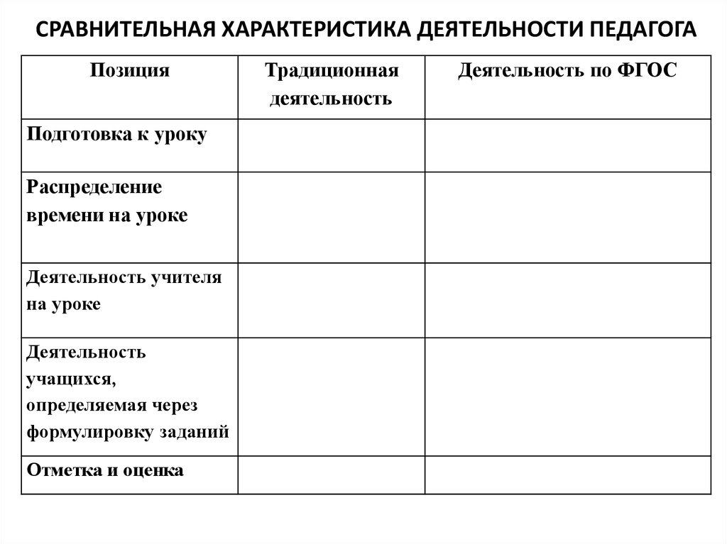 СРАВНИТЕЛЬНАЯ ХАРАКТЕРИСТИКА ДЕЯТЕЛЬНОСТИ ПЕДАГОГАПозиция