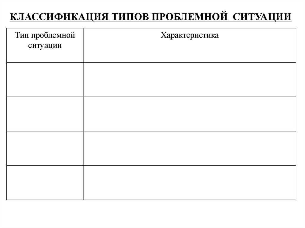 КЛАССИФИКАЦИЯ ТИПОВ ПРОБЛЕМНОЙ СИТУАЦИИТип проблемной