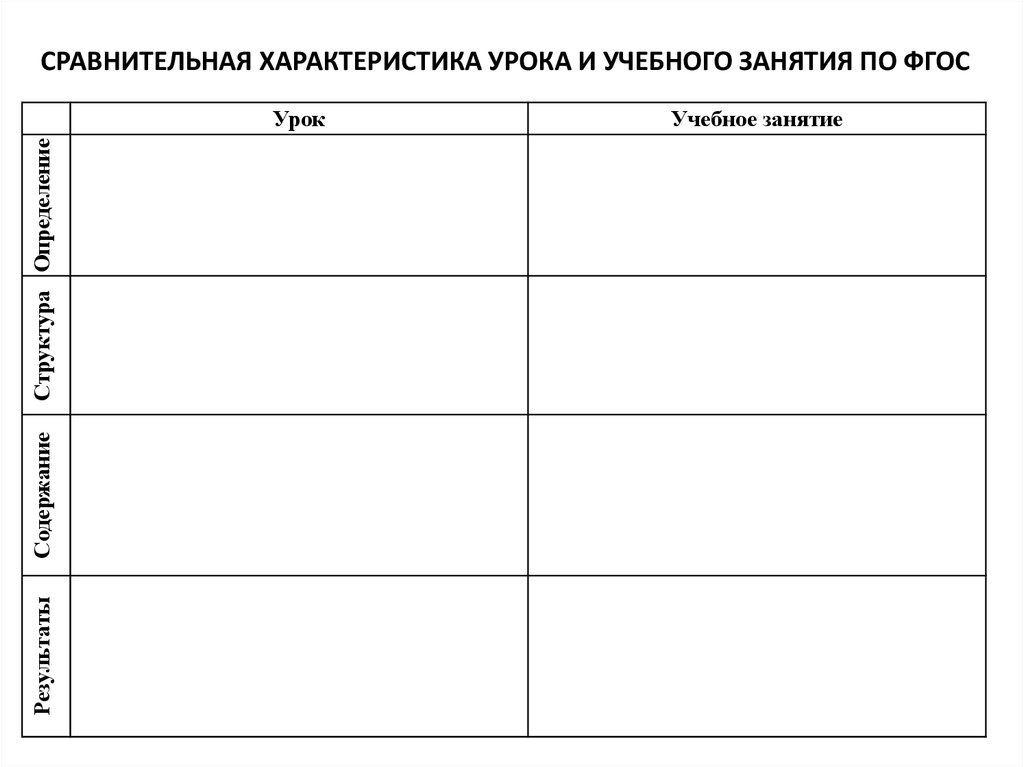 СРАВНИТЕЛЬНАЯ ХАРАКТЕРИСТИКА УРОКА И УЧЕБНОГО ЗАНЯТИЯ ПО ФГОСРезультаты