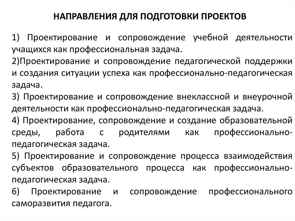 НАПРАВЛЕНИЯ ДЛЯ ПОДГОТОВКИ ПРОЕКТОВ1) Проектирование и сопровождение учебной деятельности