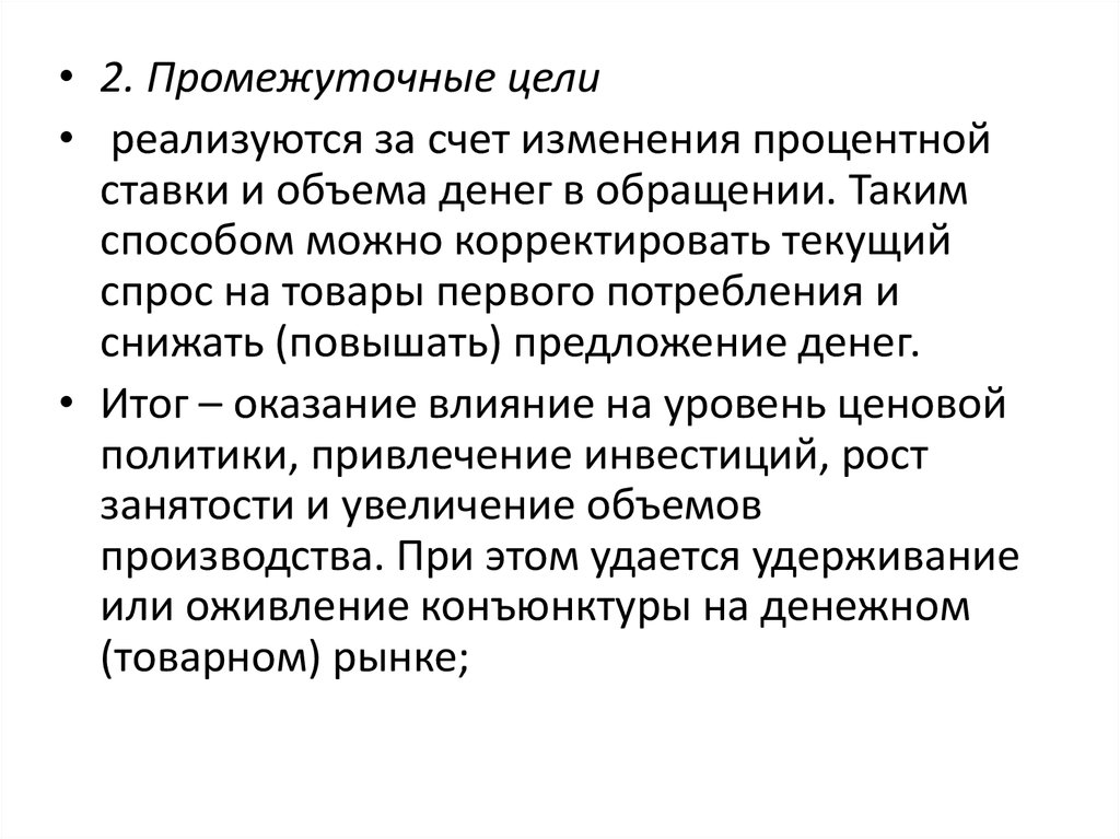 • 2. Промежуточные цели• реализуются за счет изменения процентной