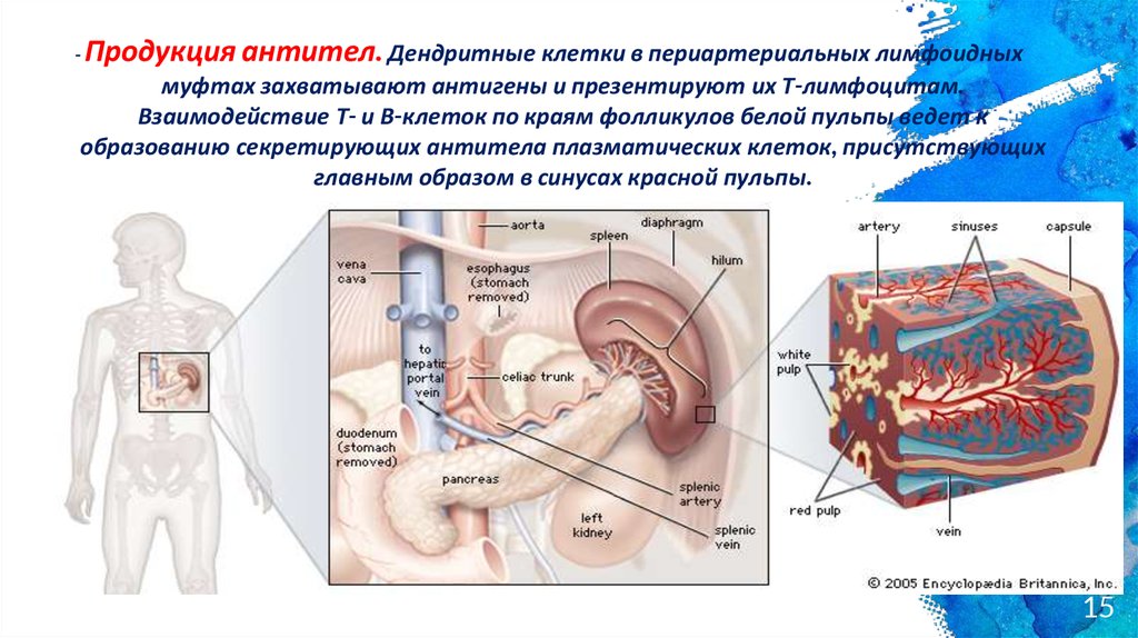 селезенки содержатся лимфоциты, участвующие в иммунологических