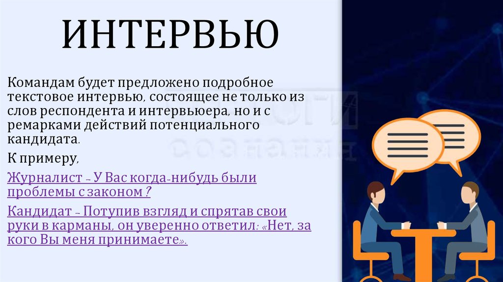 ИНТЕРВЬЮКомандам будет предложено подробное
