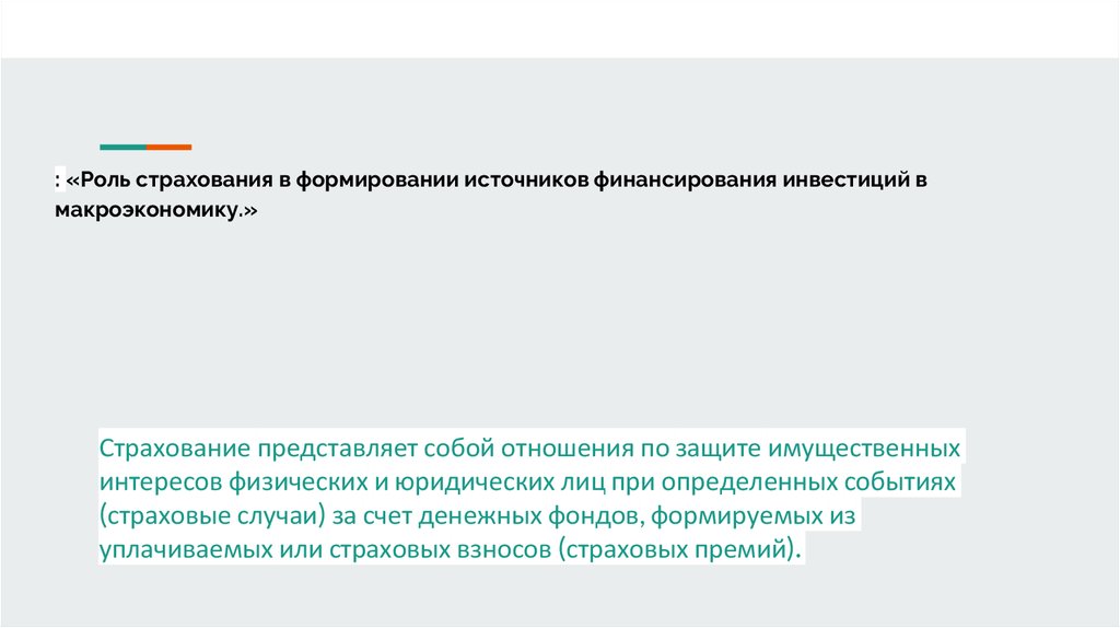 : «Роль страхования в формировании источников финансирования инвестиций вмакроэкономику.»