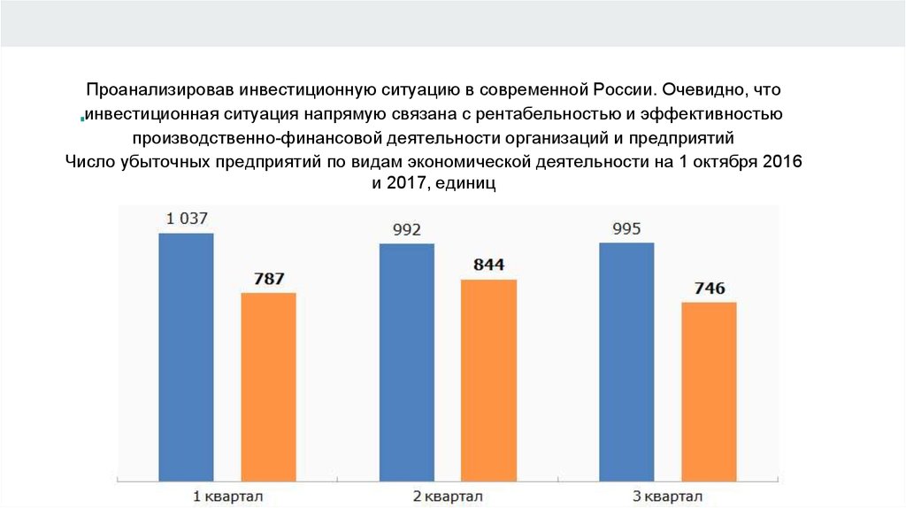 Проанализировав инвестиционную ситуацию в современной России. Очевидно, чтоинвестиционная ситуация напрямую связана с рентабельностью и эффективностью