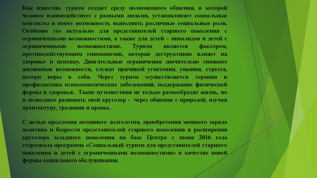 Как известно, туризм создает среду полноценного общения, в которойчеловек взаимодействует с разными людьми, устанавливает социальные