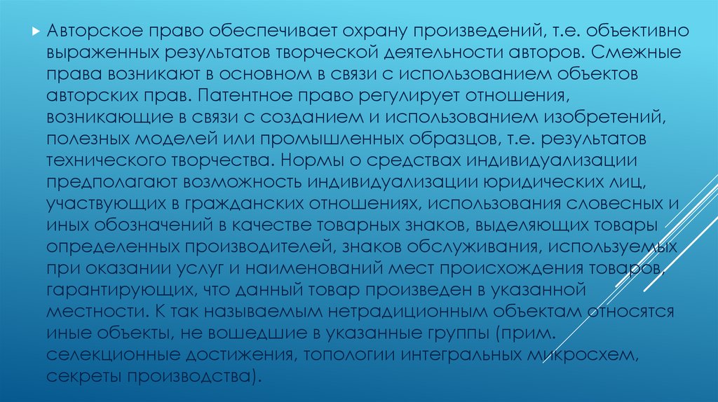В целом интеллектуальные права образуют сложную систему правовых норм,