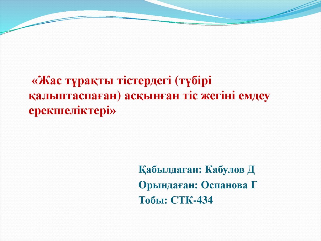 1. «Жас тұрақты тістердегі (түбірі қалыптаспаған) асқынған тіс жегіні емдеу ерекшеліктері»