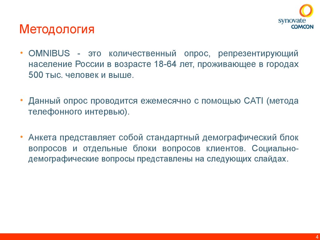 Методология• OMNIBUS - это количественный опрос, репрезентирующий