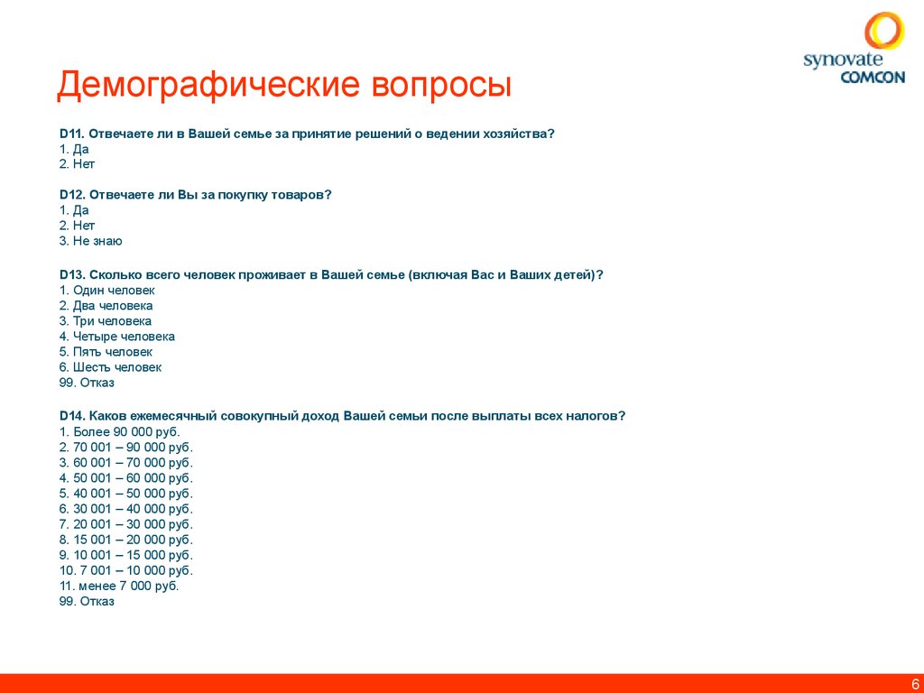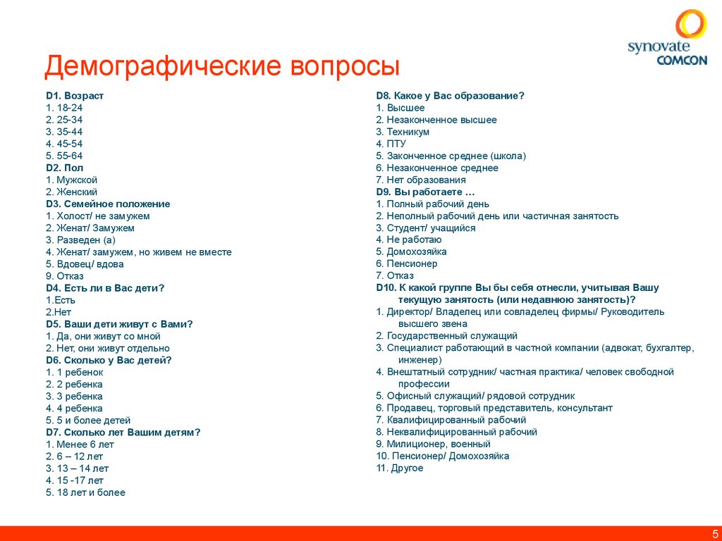 вопросов и отдельные блоки вопросов клиентов. Социальнодемографические вопросы представлены на следующих слайдах.