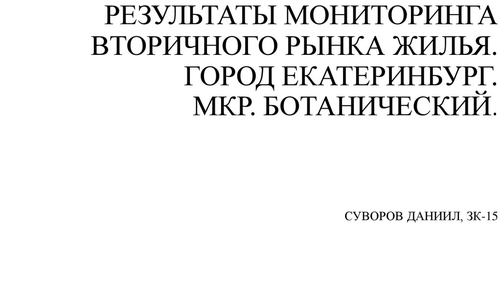 1. РЕЗУЛЬТАТЫ МОНИТОРИНГА ВТОРИЧНОГО РЫНКА ЖИЛЬЯ. ГОРОД ЕКАТЕРИНБУРГ. МКР. БОТАНИЧЕСКИЙ.