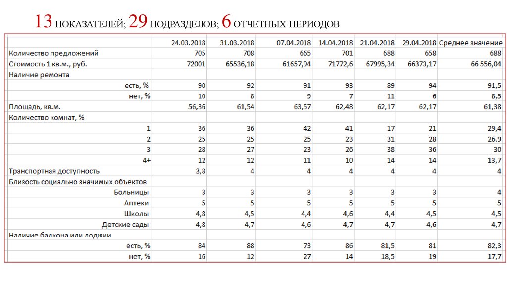 13 ПОКАЗАТЕЛЕЙ; 29 ПОДРАЗДЕЛОВ; 6 ОТЧЕТНЫХ ПЕРИОДОВ3.