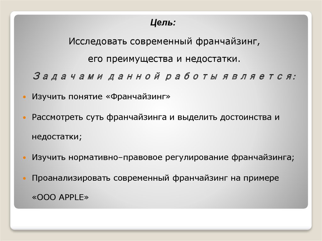 Цель:Исследовать современный франчайзинг,