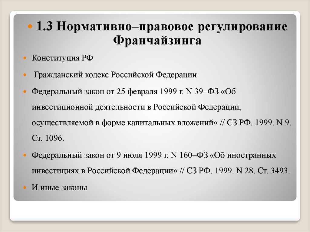 инвестициях в Российской Федерации» // СЗ РФ. 1999. N 28. Ст. 3493.