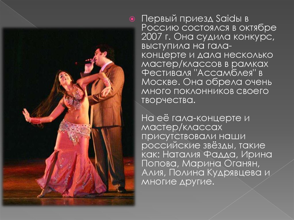 Первый приезд Saidы вРоссию состоялся в октябре