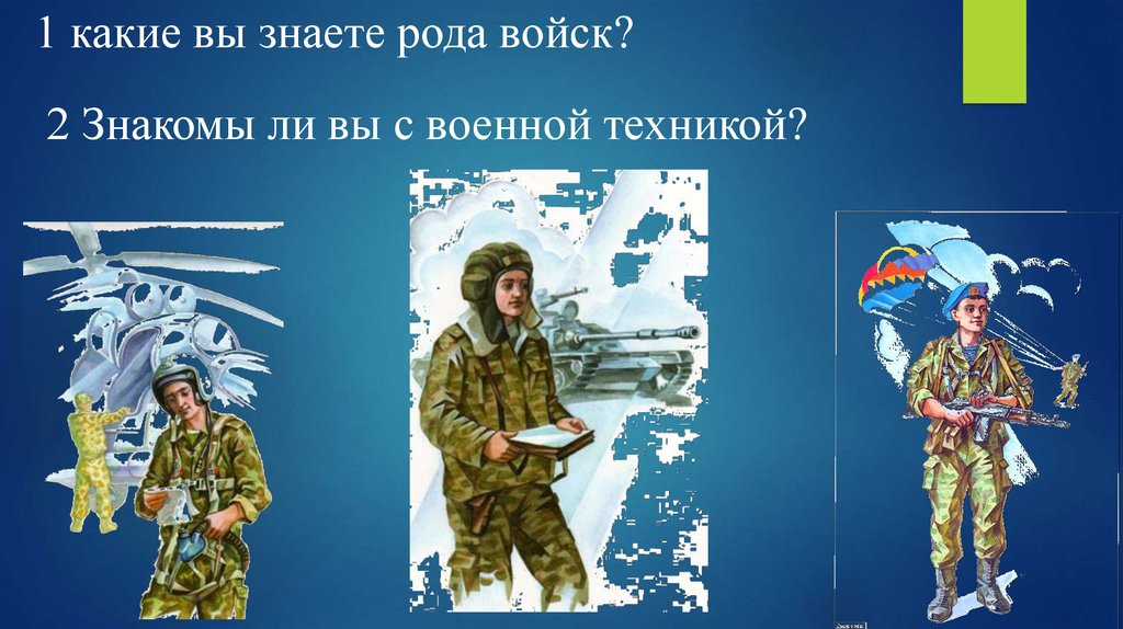 1 какие вы знаете рода войск?2 Знакомы ли вы с военной техникой?