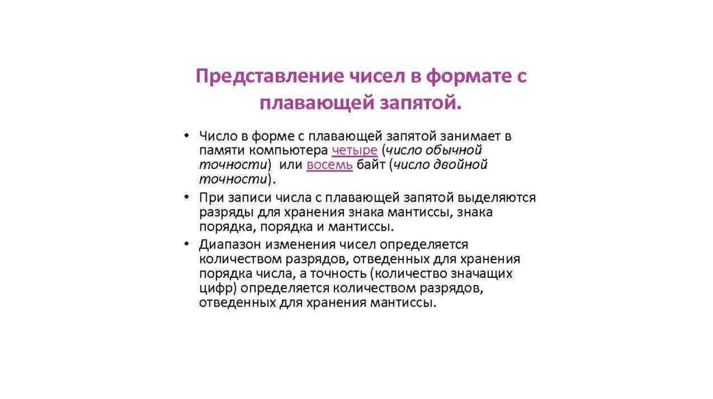 Представление чисел в формате с плавающей запятой