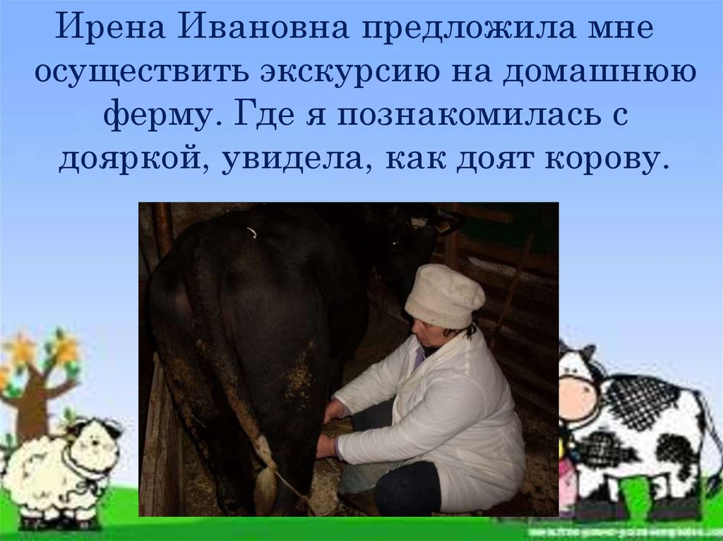 дояркой, увидела, как доят корову.