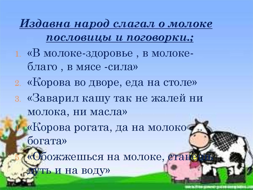Издавна народ слагал о молокепословицы и поговорки.;