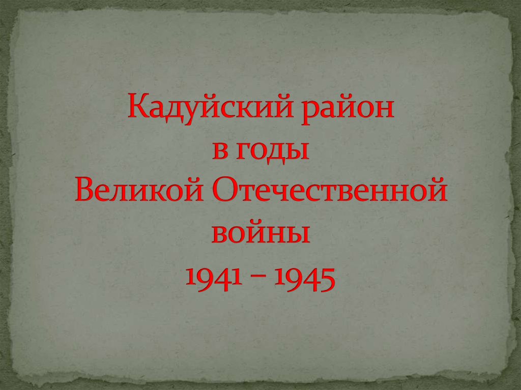1. Кадуйский район в годы Великой Отечественной войны 1941 – 1945