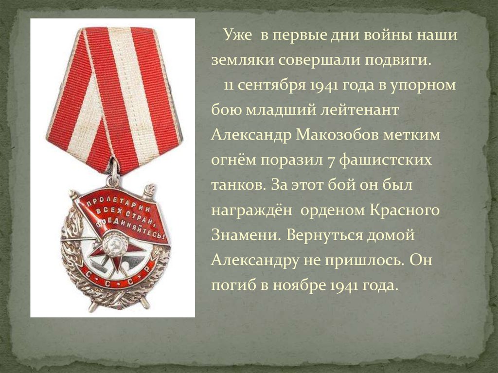 Уже в первые дни войны нашиземляки совершали подвиги.