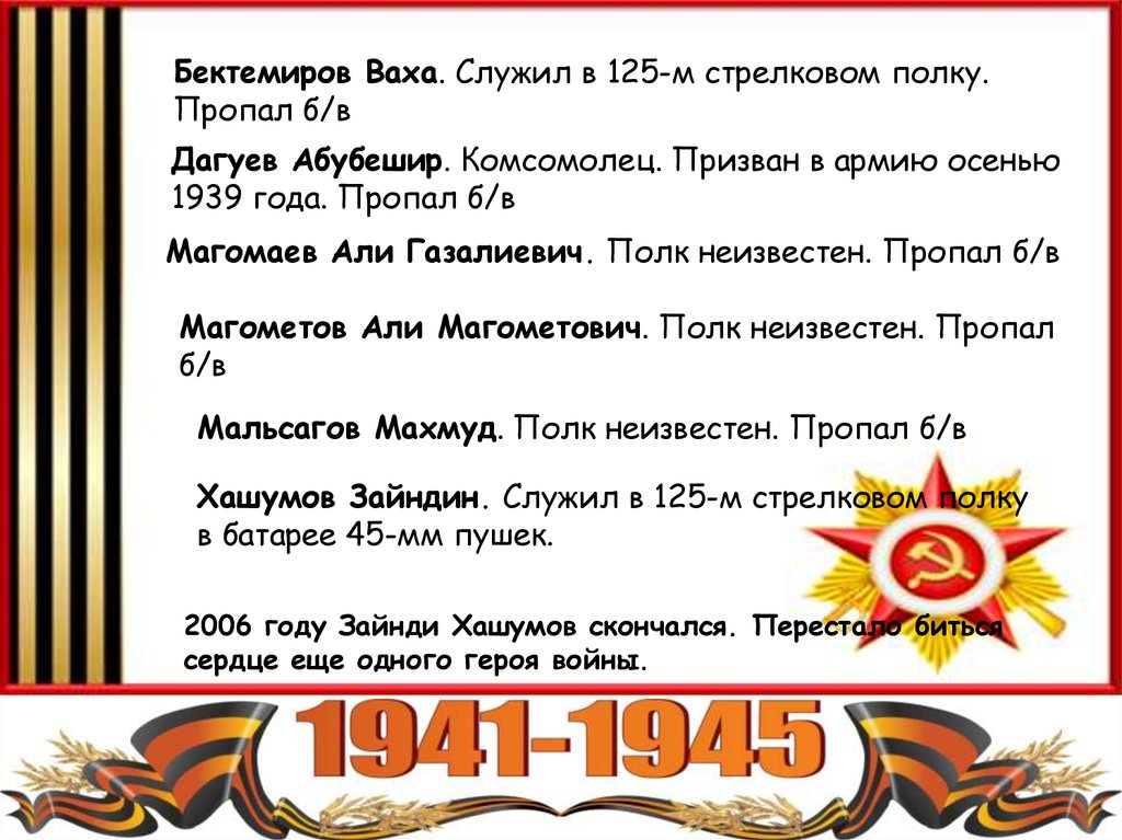 Хашумов Зайндин. Служил в 125-м стрелковом полку