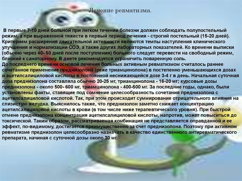 ревматизме преднизолон целесообразно назначать в качество единственного антиревматического