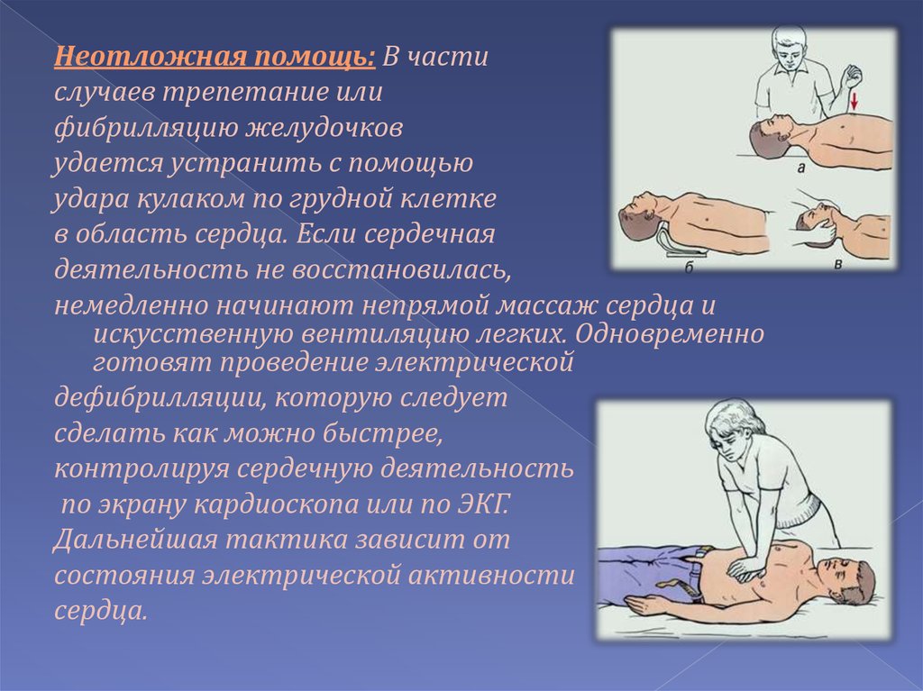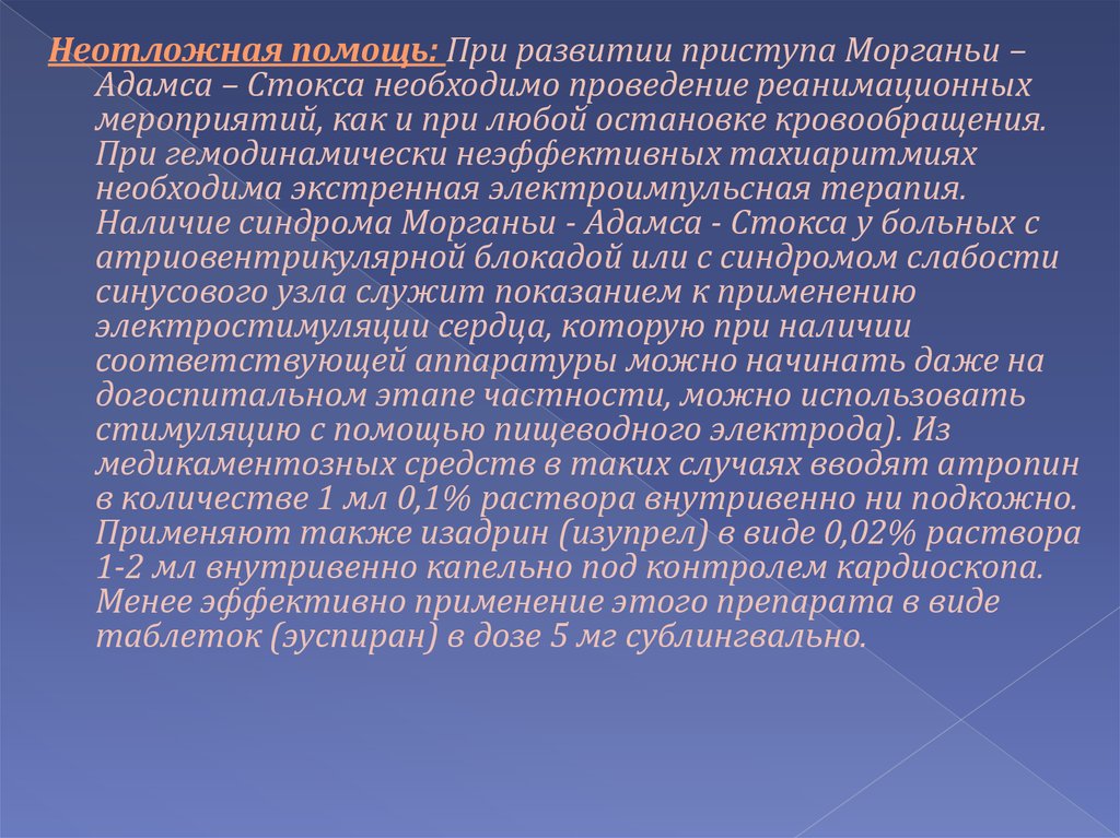 Неотложная помощь: При развитии приступа Морганьи –Адамса – Стокса необходимо проведение реанимационных