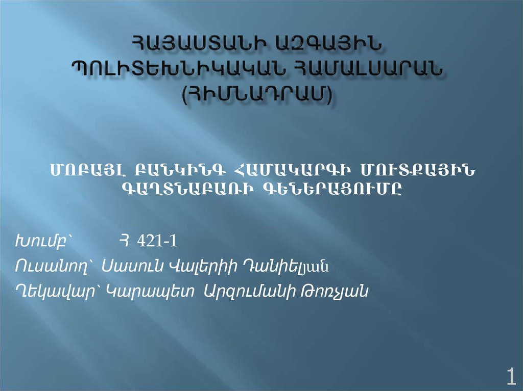 1. ՀԱՅԱՍՏԱՆԻ ԱԶԳԱՅԻՆ ՊՈԼԻՏԵԽՆԻԿԱԿԱՆ ՀԱՄԱԼՍԱՐԱՆ (հիմնադրամ)