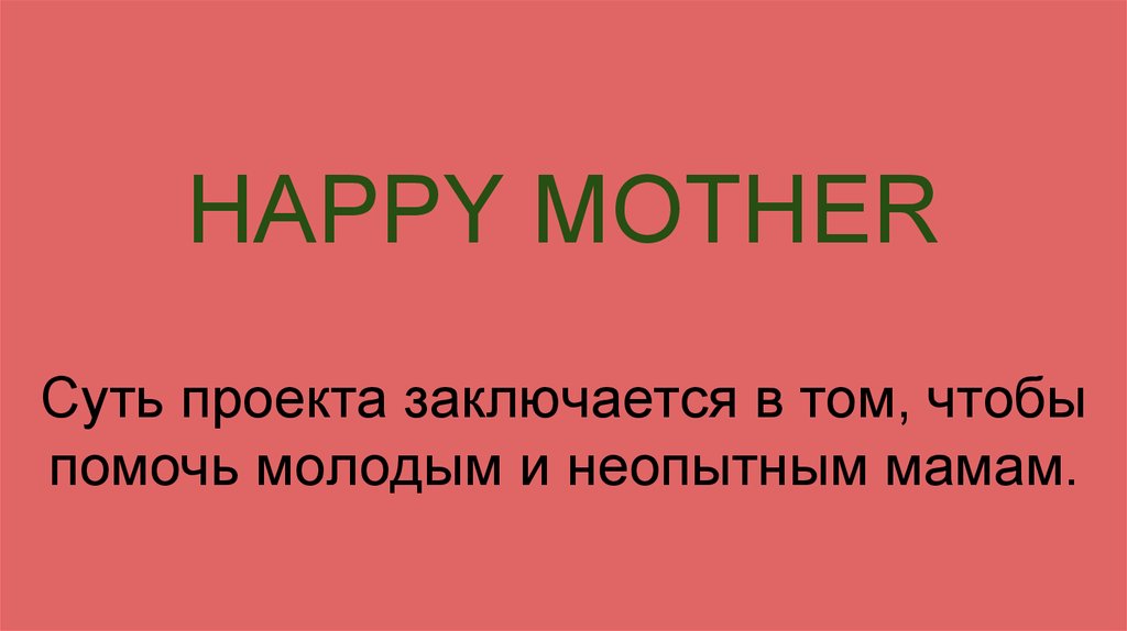 HAPPY MOTHERСуть проекта заключается в том, чтобы