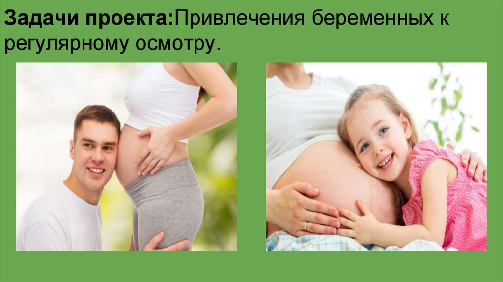 Задачи проекта:Привлечения беременных крегулярному осмотру.