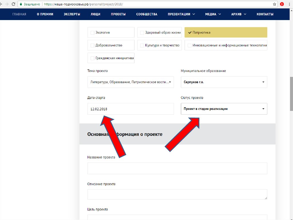 Как зарегистрировать проект на сайте наше-подмосковье.рф