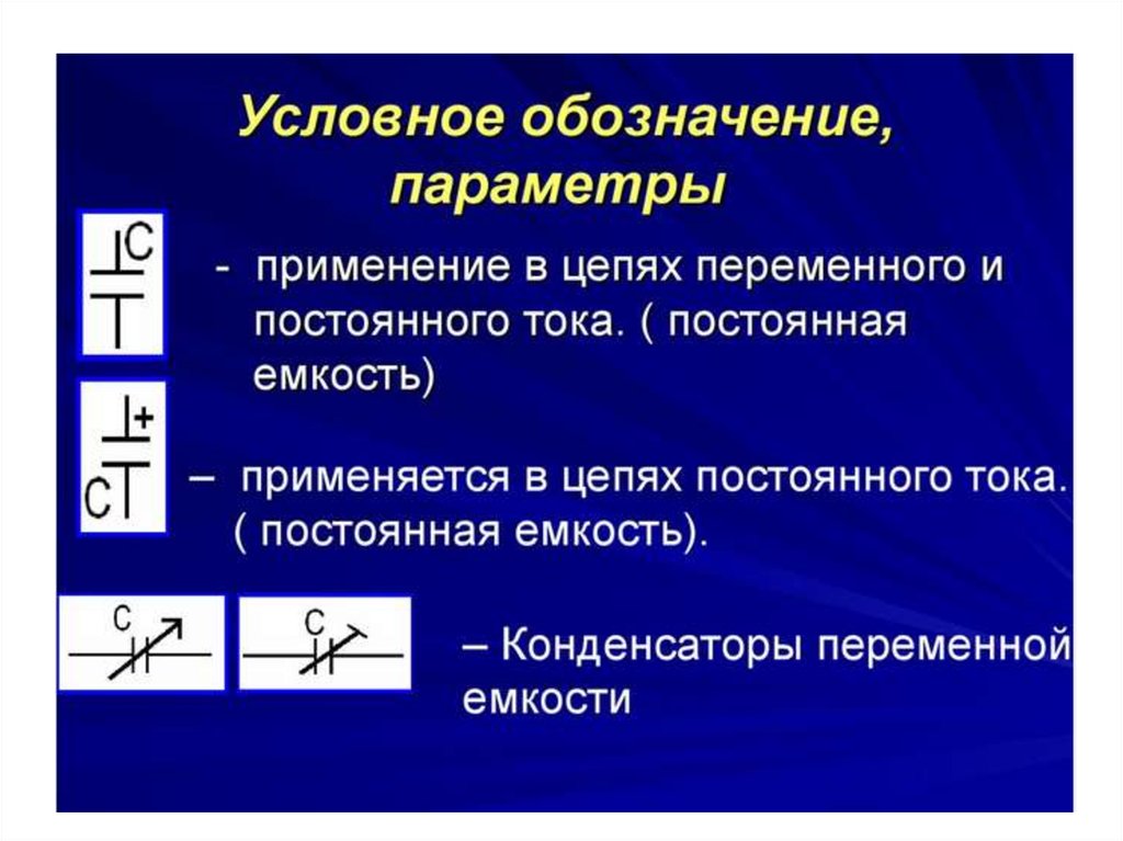 Конденсаторы. Обозначения и виды конденсаторов