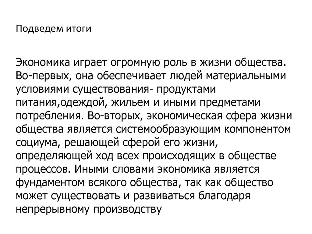 Подведем итогиЭкономика играет огромную роль в жизни общества.
