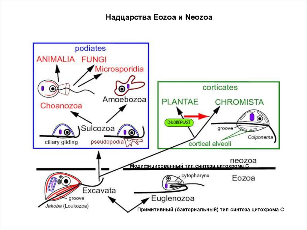 Надцарства Eozoa и NeozoaМодифицированный тип синтеза цитохрома С