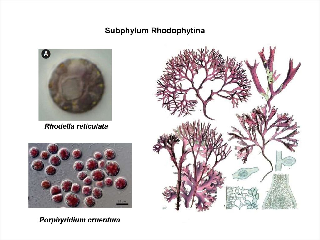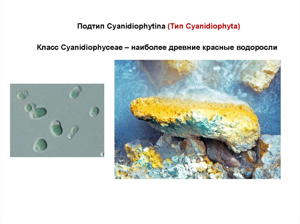 Подтип Cyanidiophytina (Тип Cyanidiophyta)Класс Cyanidiophyceae – наиболее древние красные водоросли