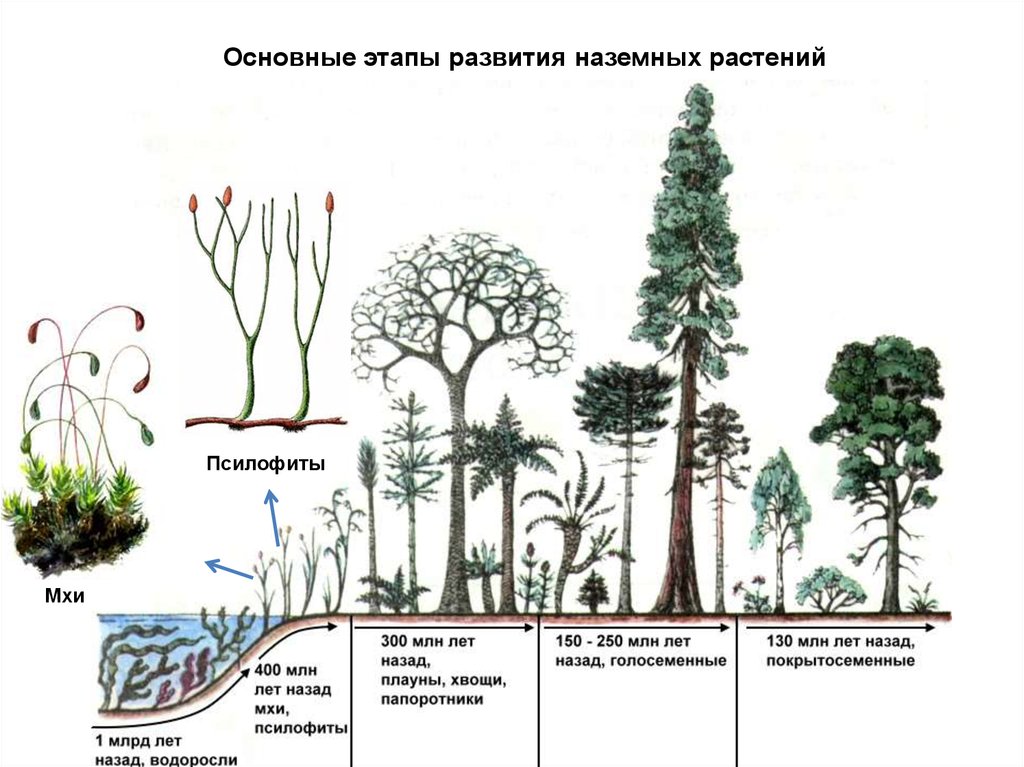 Основные этапы развития наземных растенийПсилофиты